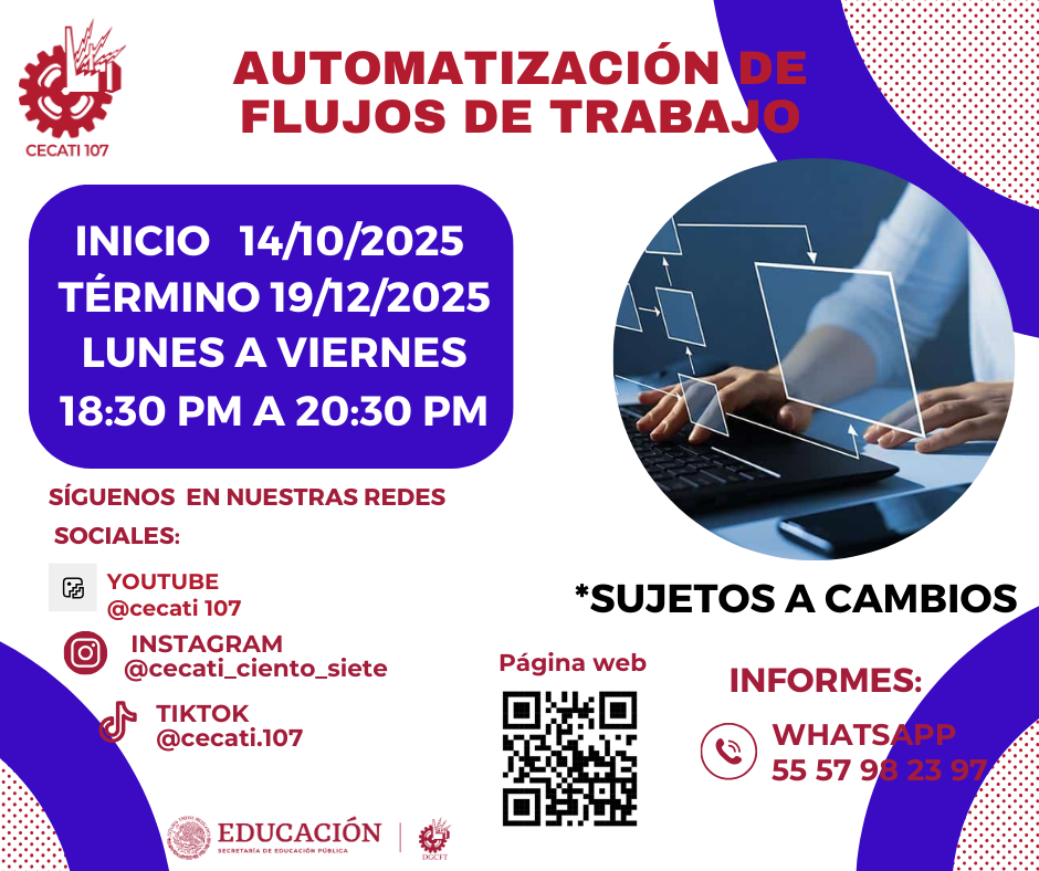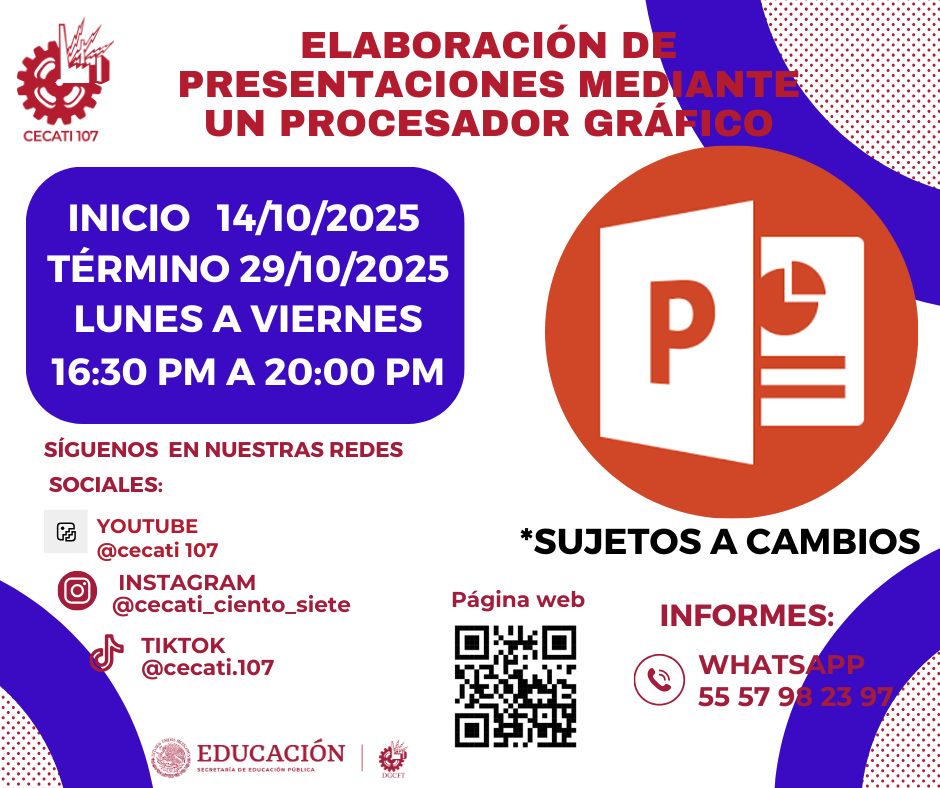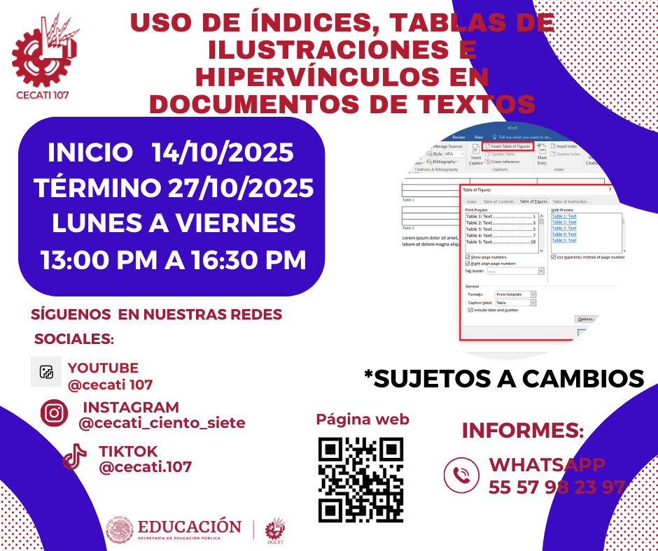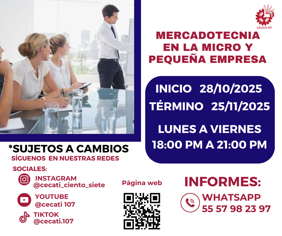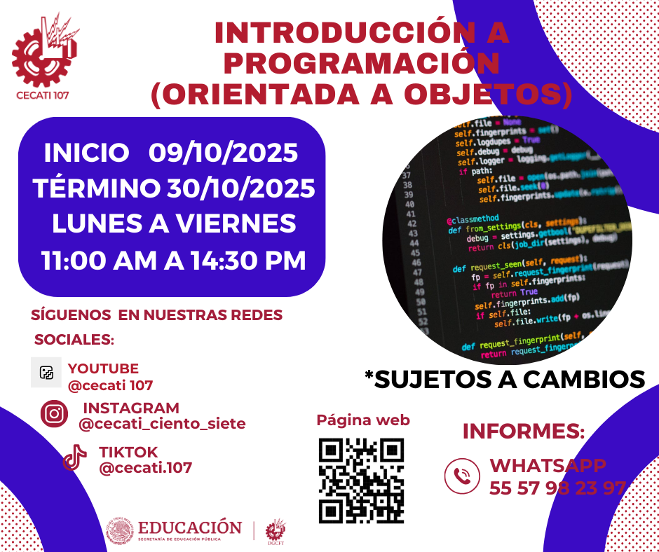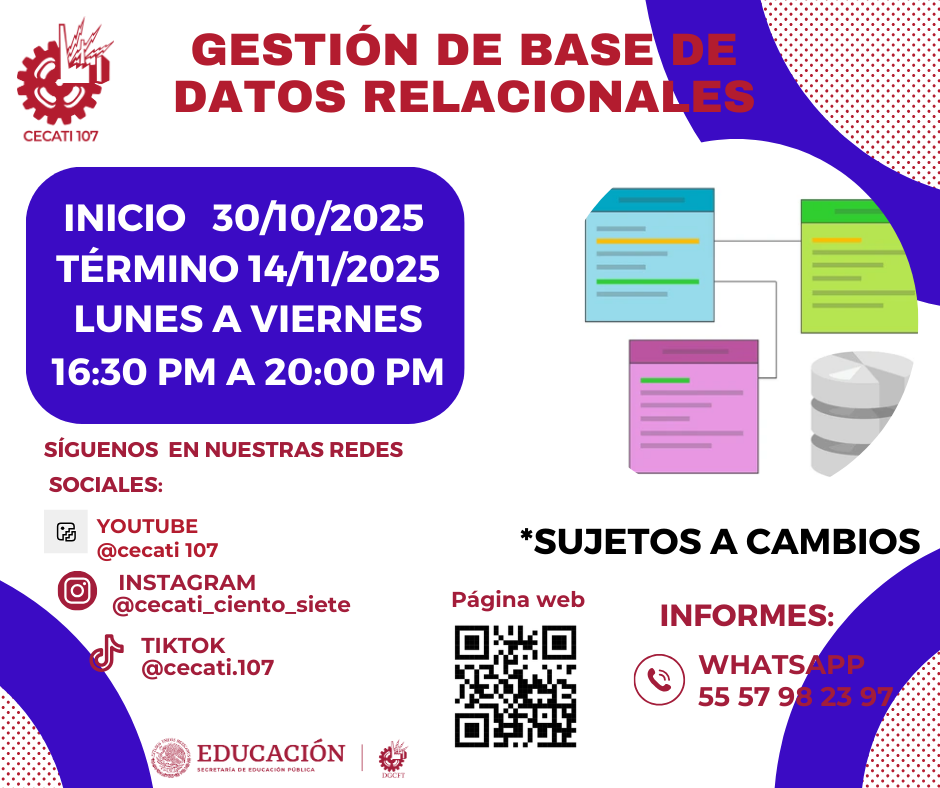 CURSOS DE OCTUBRE Alimentos y Bebidas PREPARACIÓN DE COMIDA CHINAPIZZA ARTESANALAPLICACIÓN DE TÉCNICAS CULINARIASPREPARACIÓN DE SNACK´S Informática ELABORACIÓN DE DOCUMENTOS MEDIANTE UN PROCESADOR DE TEXTOSINTRODUCCIÓN A PROGRAMACIÓN (ORIENTADA A OBJETOS)USO DE ÍNDICES, TABLAS DE ILUSTRACIONES E HIPERVÍNCULOS EN DOCUMENTOS DE TEXTOSMERCADOTECNIA DIGITAL PARA TU NEGOCIOELABORACIÓN DE PRESENTACIONES MEDIANTE UN PROCESADOR GRAFICOAUTOMATIZACIÓN DE FLUJOS DE TRABAJOCREACIÓN DE TABLAS DINÁMICAS Y PANELES DE CONTROL EN HOJAS DE CÁLCULODESARROLLA PROYECTOS DE TRABAJO COLABORATIVO EN LA NUBEGESTIÓN DE BASE DE DATOS RELACIONALESCREACIÓN DE FORMULAS Y USO DE REFERENCIAS EN HOJAS DE CALCULOMANEJA EXCEL BÁSICOELABORACIÓN DE LIBROS MEDIANTE UN PROCESADOR DE CÁLCULOELABORACIÓN DE PRESENTACIONES MEDIANTE UN PROCESADOR GRÁFICO Estilismo y Diseño de Imagen APLICACIÓN DE EXTENSIONES DE PESTAÑASAPLICACIÓN Y DISEÑO DE UÑAS ACRÍLIICAS Confección de Prendas de Vestir CREACIÓN DE CORTINAS EN DIFERENTES DISEÑOSPLANTILLAS BÁSICAS DE TALLE Y FALDA PARA DAMAPRINCIPIOS DE LA CONFECCIÓN EN PRENDAS DE VESTIRELABORACIÓN DE ABRIGO PARA DAMATRANSFORMACIÓN DE PLANTILLAS BÁSICAS PARA DAMACONFECCIÓN DE ROPA PARA MASCOTASELABORACIÓN DE CAMISA PARA CABALLEROCONFECCIÓN DE BLUSA PARA NIÑACONFECCIÓN DE VESTIDO CAMISERO Equipos y Sistemas y Soporte Técnico a Equipos y Sistemas Computacionales INTEGRACIÓN DE VIDEO VIGILANCIA CON CCTV ANALÓGICOUTILERÍAS AVANZADAS PARA EL SOPORTE TÉCNICO A EQUIPO DE CÓMPUTOMANTENIMIENTO A NIVEL SOFTWARESOPORTE A NIVEL SOFTWAREINTEGRACIÓN DE VIDEO VIGILANCIA CON CCTV IP Asistencia Educativa ESTIMULACIÓN TEMPRANA PARA NIÑOS LACTANTESATENCIÓN INTEGRAL A NIÑOS MATERNALESATENCIÓN INTEGRAL A NIÑOS PREESCOLARES Centro POETA CREACIÓN BÁSICA DE DIAGRAMAS Y MAPAS MENTALES DIGITALES, COMO HERRAMIENTA DE APRENDIZAJEMENEJO BÁSICO DEL EQUIPO DE CÓMPUTO Administración MERCADOTECNIA EN LA MICRO Y PEQUEÑA EMPRESASERVICIO DE ATENCIÓN TELEFÓNICA Y TELEMERCADEO Uso de la Lengua Inglesa en Diversos Contextos ESTIMULACIÓN TEMPRANA PARA NIÑOS LACTANTES JUNIOR 1
