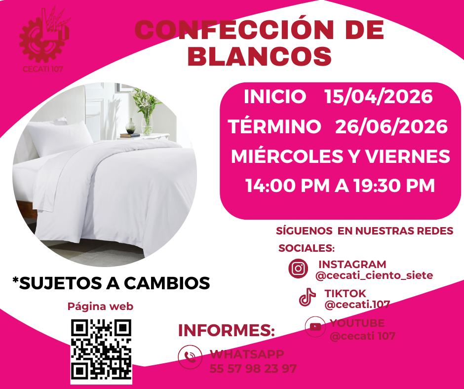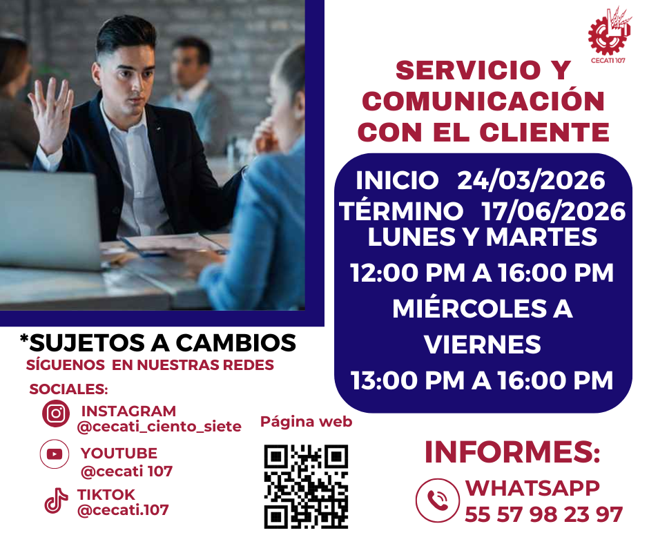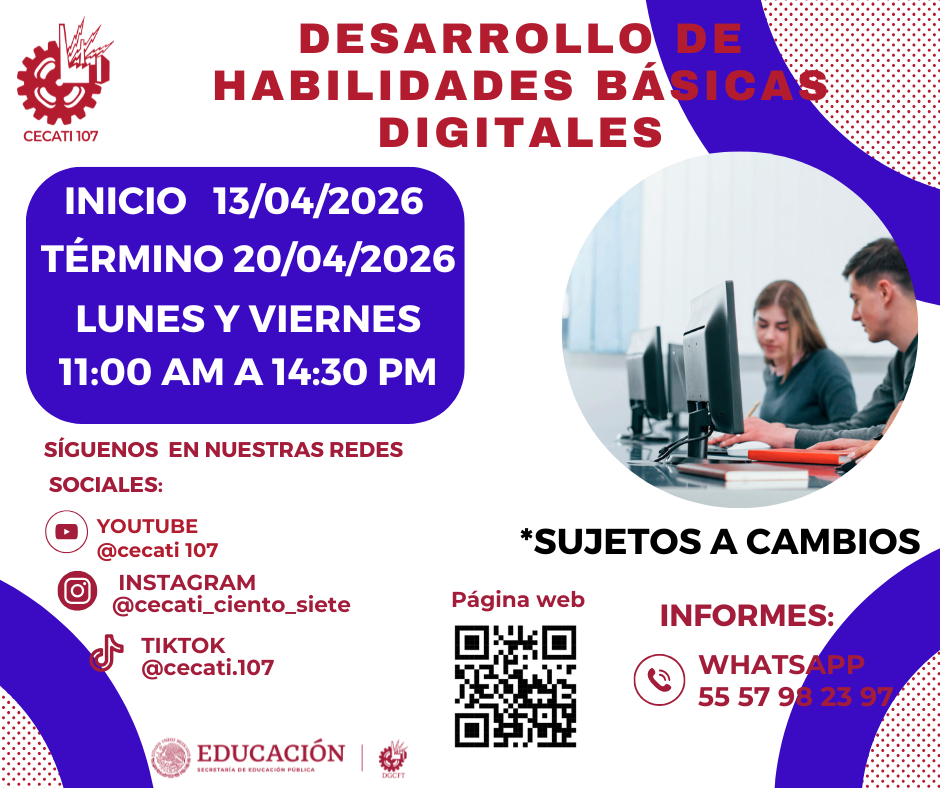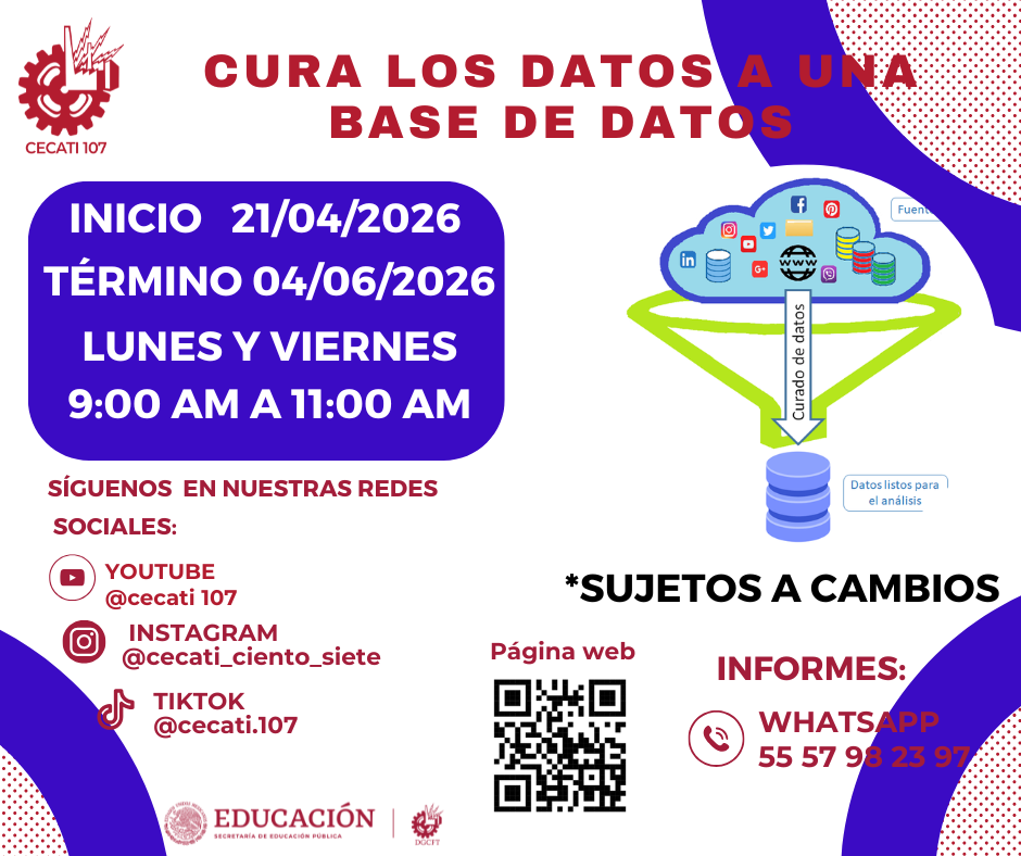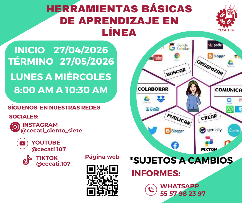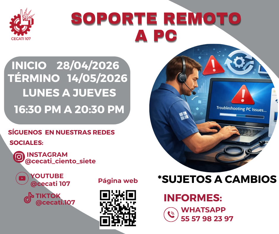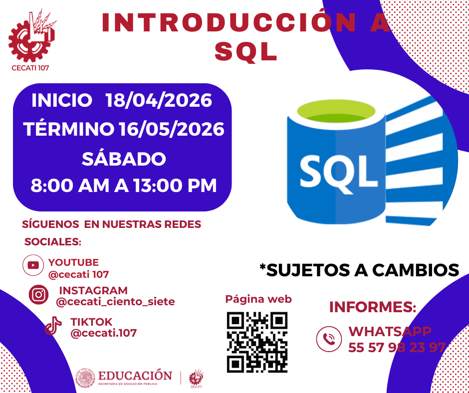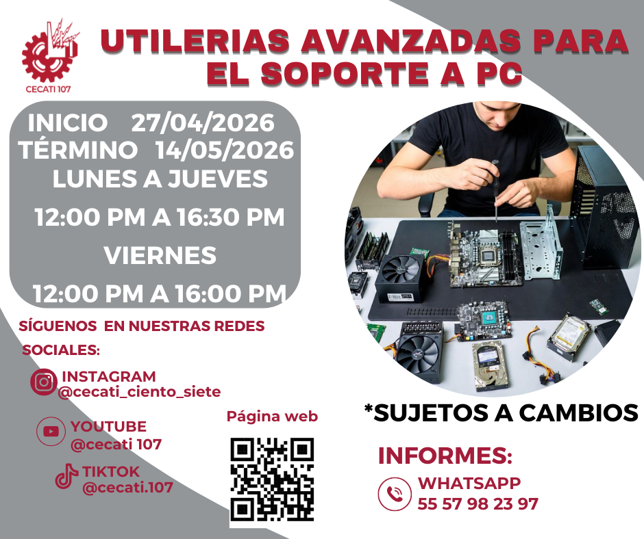 CURSOS DE ABRIL 2026 Alimentos y Bebidas TÉCNICAS DE PREPARACIÓN DE PASTAS Y SALSASTÉCNICAS DE BARISMO Y ARTE LATTE PREPARACION DE PLATILLOS CASEROS PREPARACIÓN DE COMIDA PARA NEGOCIO PREPARACIÓN DE PASTAS Y PIZZAS PREPARACIÓN DE MUFFIN Y PANQUE ARTESANAL Informática DESARROLLO DE HABILIDADES BÁSICAS DIGITALESINTRODUCCIÓN A SQLINTRODUCCIÓN A PHYTONCREACIÓN DE CONSULTAS AVANZADAS Y FORMULARIOS EN UN MANEJADOR DE BASE DE DATOS RELACIONALESCREACIÓN DE PRESENTACIONES ELECTRÓNICAS CON MULTIMEDIACURA LOS DATOS A UNA BASE DE DATOSORGANIZACIÓN Y ALMACENAMIENTO DE INFORMACIÓN DIGITALELABORACIÓN DE LIBROS MEDIANTE UN PROCESADOR DE CÁLCULO Estilismo y Diseño de Imagen APLICACIÓN DE EXTENSIONES DE CABELLOCORTES BÁSICOS DE CABELLO PARA DAMA Y CABALLERO ELABORACIÓN DE AUTOMAQUILLAJE Confección de Prendas de Vestir ELABORACIÓN DE PIJAMA DE SATÍNELABORACIÓN DE CHALECO PARA DAMAELABORACIÓN DE VESTIDOS PARA PRIMAVERA INFANTILELABORACIÓN DE JUMPSUITS DE MUJERCONFECCIÓN DE BLANCOSCONFECCIÓN DE PANTS UNISEXTRAZO Y CONFECCIÓN DE PANTALÓN ACAMPANADO Equipos y Sistemas y Soporte Técnico a Equipos y Sistemas Computacionales SOPORTE REMOTO A PCREPARACIÓN DE CONSOLAS DE VIDEOJUEGOSINTEGRACIÓN DE SISTEMAS BÁSICOS DE DOMÓTICAUTILERIAS AVANZADAS PARA EL SOPORTE A PC Asistencia Educativa ELABORACIÓN DE MANUALIDADES ESCOLARES CON MATERIALES CONVENCIONALES Y DE REUSOASISTENCIA A NIÑOS CON DISCAPACIDAD Y APTITUDES SOBRESALIENTESESTIMULACIÓN TEMPRANA A NIÑOS LACTANTESELABORACION DE MANUALIDADES Y TECNICAS PARA EL NIÑO PREESCOLARIDENTIFICACIÓN DE TRASTORNOS INFANTILES EN NIÑOS PREESCOLARESCULTURA DE SERVICIO Y ATENCIÓN HUMANIZADA Centro POETA HERRAMIENTAS BÁSICAS DE APRENDIZAJE EN LÍNEAPROCESO ADMINISTRATIVO PASO A PASO Administración SERVICIO Y COMUNICACIÓN CON EL CLIENTEACTITUD EN EL SERVICIODESARROLLO DE HABILIDADES BÁSICAS ARA EL EMPRENDIMIENTO Uso de la Lengua Inglesa en Diversos Contextos INGLÉS GRAMATICAL EL USO DE LA VOZ PASIVA EN INGLÉS EN PASADO SIMPLE Y PASADO PROGRESIVO
